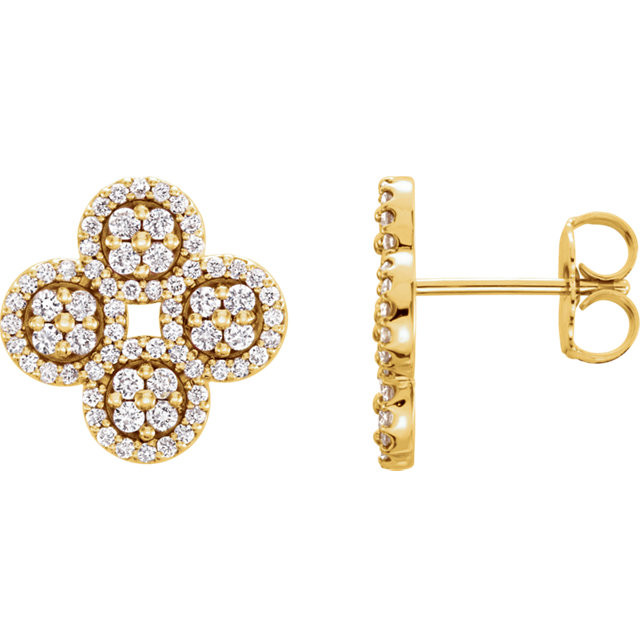 14 Karat Yellow Gold 0.50 Carat Diamond Clover Earrings