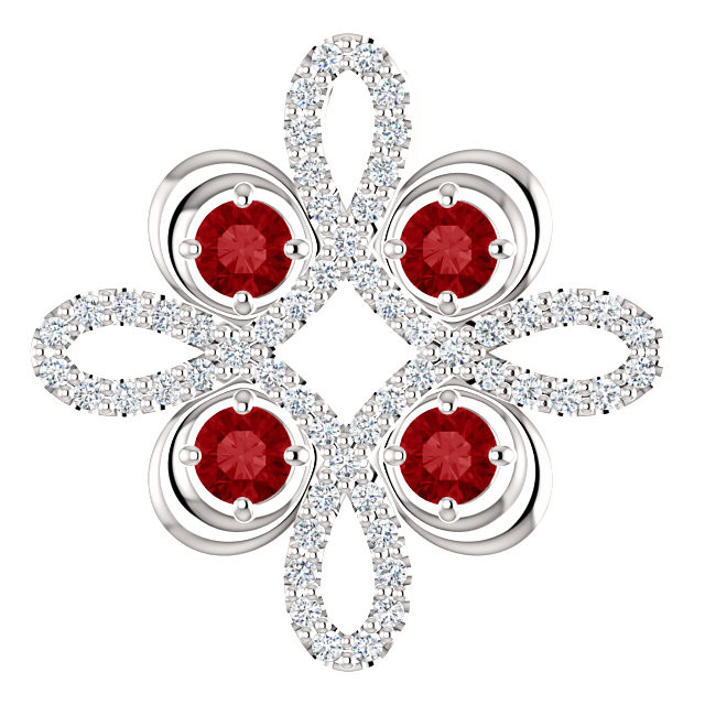 14 Karat White Gold Ruby & .17 Total Carat Weight Diamond Clover Pendant