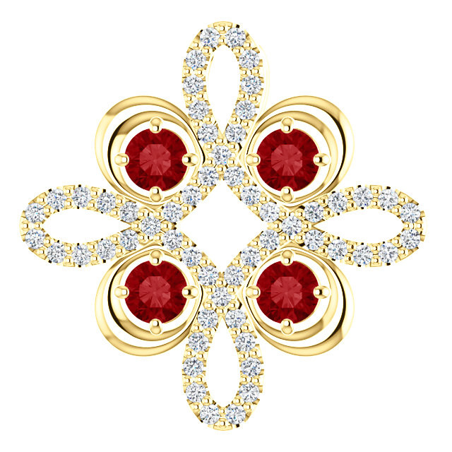 14 Karat Yellow Gold Ruby & .17 Total Carat Weight Diamond Clover Pendant