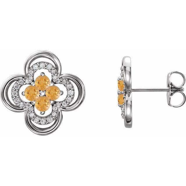 Platinum Citrine and 0.20 Carat Diamond Clover Earrings