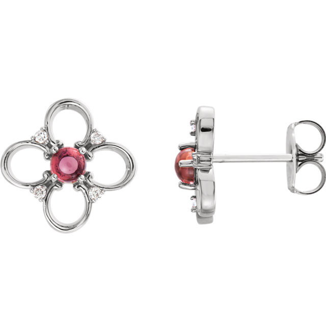14 Karat White Gold Pink Tourmaline and .04 Carat Diamond Earrings