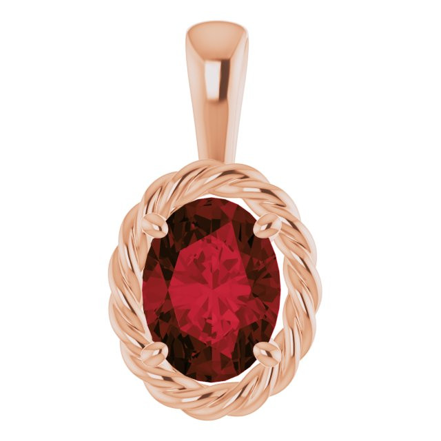 Red Garnet Gem in 14 Karat Rose Gold Mozambique Garnet Rope Pendant