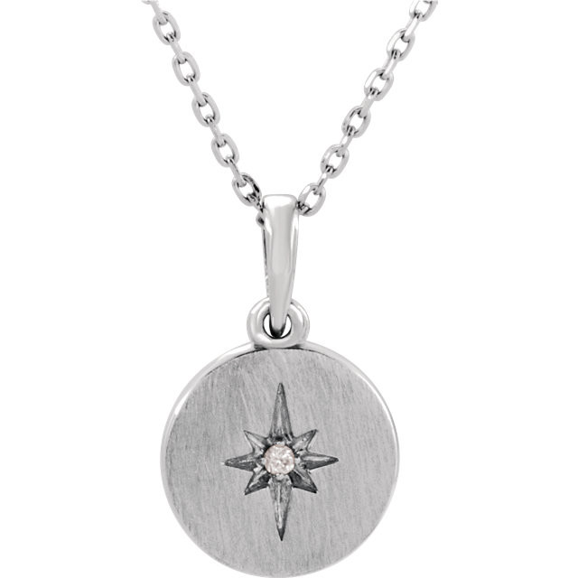 This beautiful 14 Karat White Gold .01 Carat Diamond Starburst 16 inch Necklace is set with selected fine genuine diamond and set with the highest craftsmanship standards in 14kt White gold