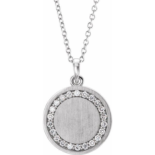 White Diamond Necklace in 14 Karat White Gold 0.20 Carat Diamond Engravable 16 inch Necklace