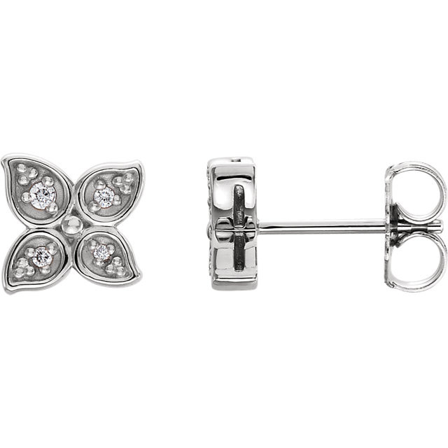 This beautiful Platinum .05 Carat Total Weight Diamond Leaf Earrings is set with selected fine genuine diamond and set with the highest craftsmanship standards in sterling silver
