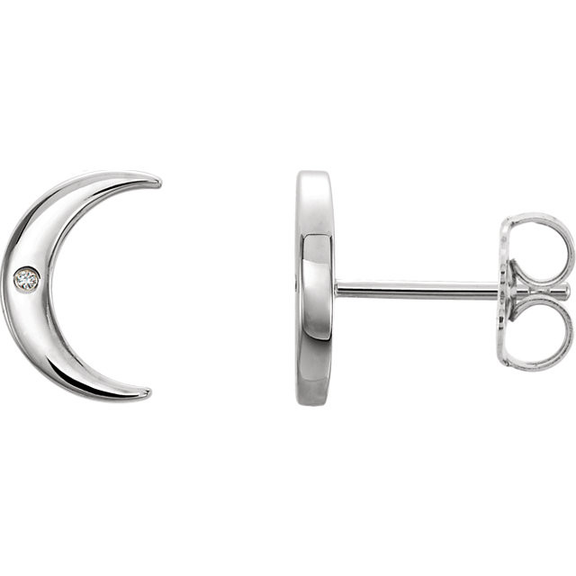 This beautiful 14 Karat White Gold .005 Carat Total Weight Diamond Crescent Earrings is set with selected fine genuine diamond and set with the highest craftsmanship standards in 14kt White gold