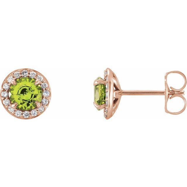 14 Karat Rose Gold 5 mm Round Peridot and 0.13 Carat Diamond Earrings