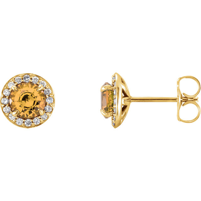 Buy 14 Karat Yellow Gold 4.5mm Round Citrine and 0.17 Carat Diamond Earrings