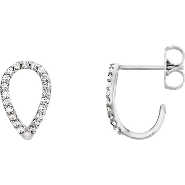 14 Karat White Gold 0.20 Carat Diamond Geometric J Hoop Earrings