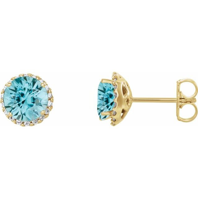 14 Karat Yellow Gold Genuine Blue Zircon and 0.16 Carat Diamond Earrings
