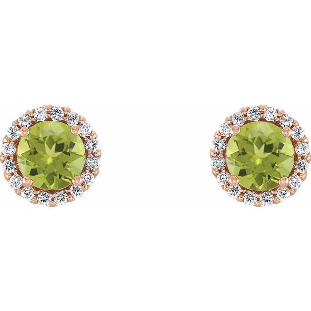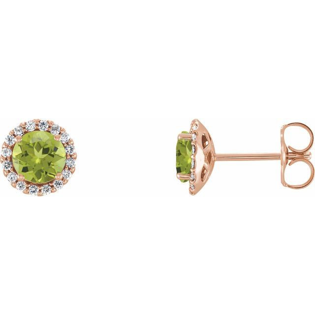 14 Karat Rose Gold 4 mm Natural Peridot and 0.10 Carat Carat Natural Diamond Earrings Comes Set With