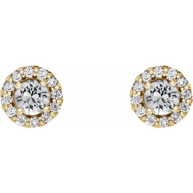 14K Yellow 4.5 mm Natural White Sapphire & 1/10 CTW Natural Diamond Earrings Comes Set With