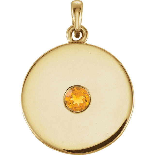 This beautiful 14 Karat Yellow Gold Citrine Disc Pendant is set with selected fine genuine citrine and set with the highest craftsmanship standards in 14kt Yellow gold