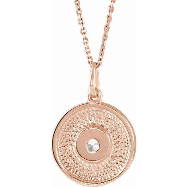 14 Karat Rose Gold Lab Grown Ruby Disc 16 inch Necklace Comes Set With