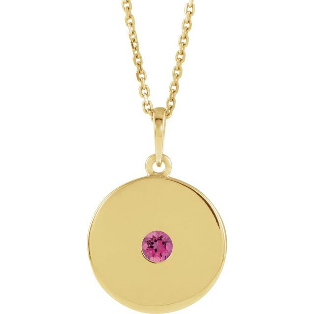 Pink Tourmaline Necklace in 14 Karat Yellow Gold Pink Tourmaline Disc 16 inch Necklace