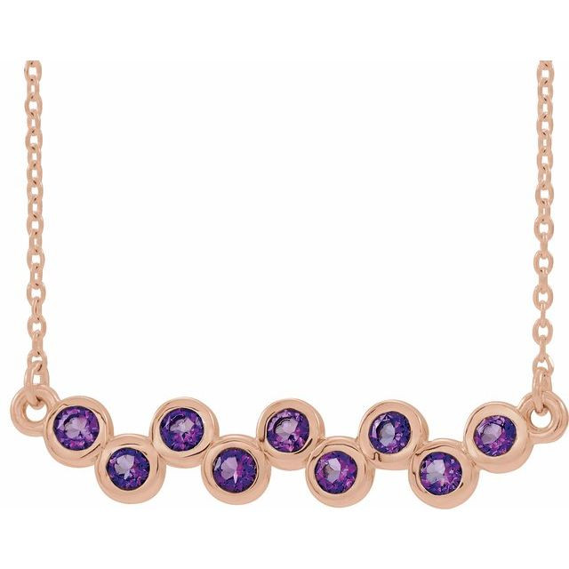 This beautiful 14 Karat Rose Gold Amethyst Bezel-Set Bar 16-18" Necklace - Graceful Round Amethyst Necklace is a timeless jewelry item made in the highest standards for Gemstone Fashion jewelry