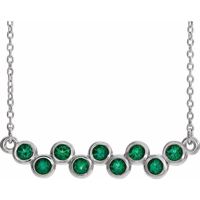 14K White Lab-Grown Emerald Bezel-Set Bar 16-18" Necklace Comes Set With