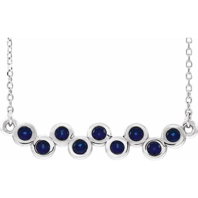 Platinum Sapphire Bezel Set Bar 16 inch Necklace