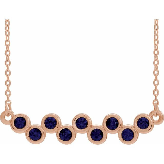 14K Rose Lab-Grown Blue Sapphire Bezel-Set Bar 16 inch Necklace Comes Set With