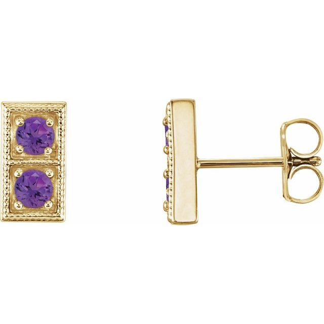 14 Karat Yellow Gold Amethyst Two Stone Earrings