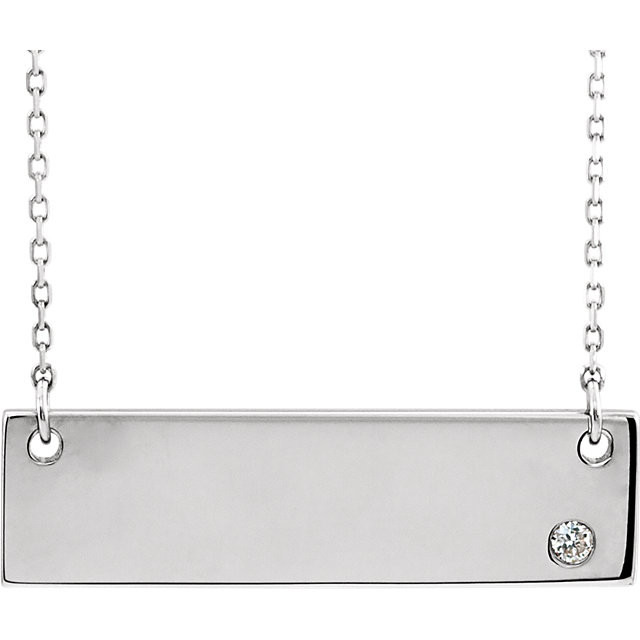Genuine 14 Karat White Gold .03 Carat Diamond Bar 18 inch Necklace without Engraving