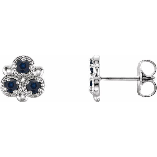 This beautiful Sterling Silver Blue Sapphire Three-Stone Earrings, these Nice Round Sapphire Earrings is a timeless jewelry item made in the highest standards for Gemstone Fashion jewelry