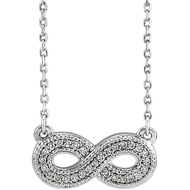 This beautiful 14 Karat White Gold .08 Carat Total Weight Diamond Infinity-Inspired 16 inch Necklace is set with selected fine genuine diamond and set with the highest craftsmanship standards in 14kt White gold