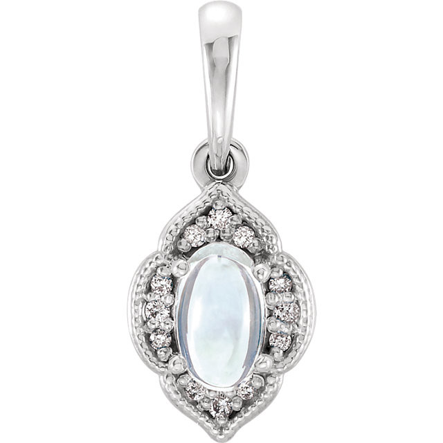 This beautiful Sterling Silver Rainbow Moonstone & .03 Carat Total Weight Diamond Clover Pendant is set with selected fine genuine moonstone and set with the highest craftsmanship standards in sterling silver