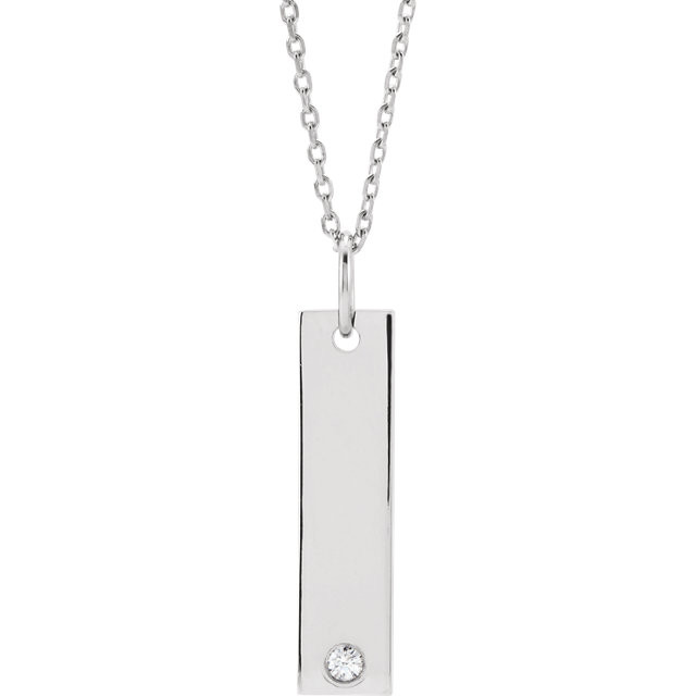 14 Karat White Gold .03 Carat Diamond Engravable Bar 16 inch Necklace