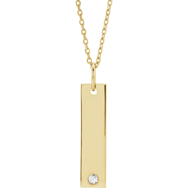 14 Karat Yellow Gold .03 Carat Diamond Engravable Bar 16 inch Necklace