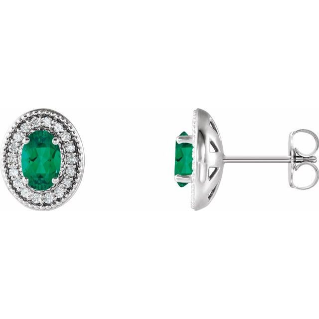 This beautiful Sterling Silver Created Emerald & 0.20 Carat Diamond Halo-Style Earrings - Nice Oval Lab-Created Emerald Earrings is a timeless jewelry item made in the highest standards for Gemstone Fashion jewelry