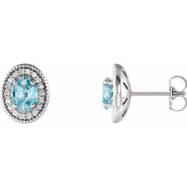 This beautiful Sterling Silver Blue Zircon & 0.20 Carat Diamond Halo-Style Earrings , these Stunning Oval Zircon Earrings is a timeless jewelry item made in the highest standards for Gemstone Fashion jewelry