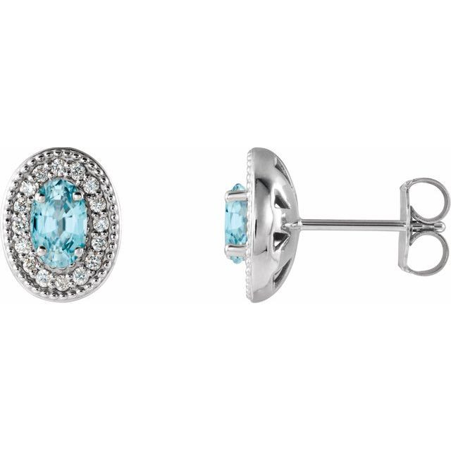 This beautiful 14 Karat White Gold Blue Zircon & 0.12 Carat Diamond Halo-Style Earrings , these Nice Oval Zircon Earrings is a timeless jewelry item made in the highest standards for Gemstone Fashion jewelry