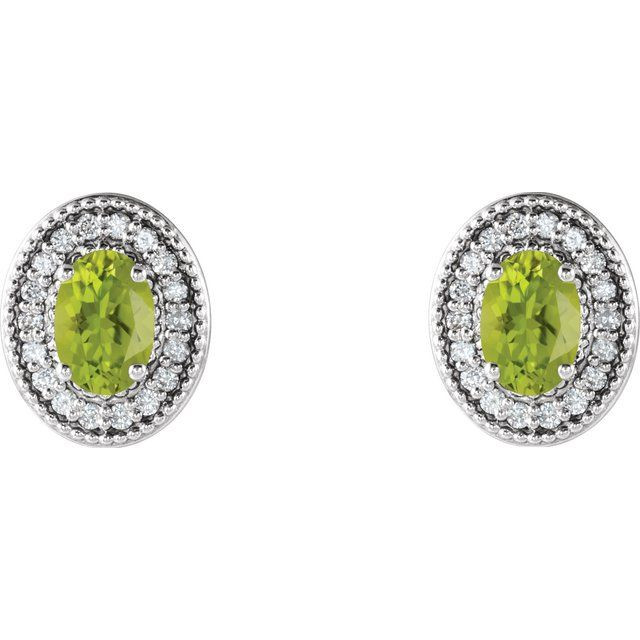 Sterling Silver 7x5 mm Natural Peridot and 0.20 Carat Natural Diamond Halo Earrings Comes Set With