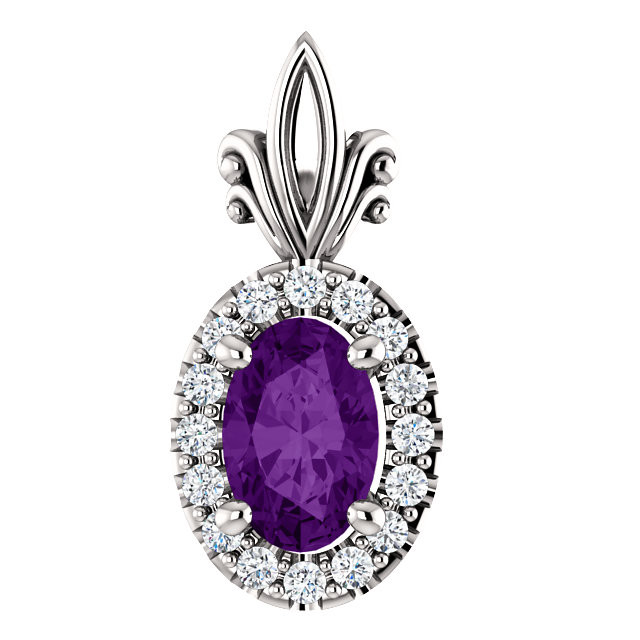 This beautiful 14 Karat White Gold Amethyst & .08 Carat Total Weight Diamond Pendant is set with selected fine genuine amethyst and set with the highest craftsmanship standards in 14kt White gold
