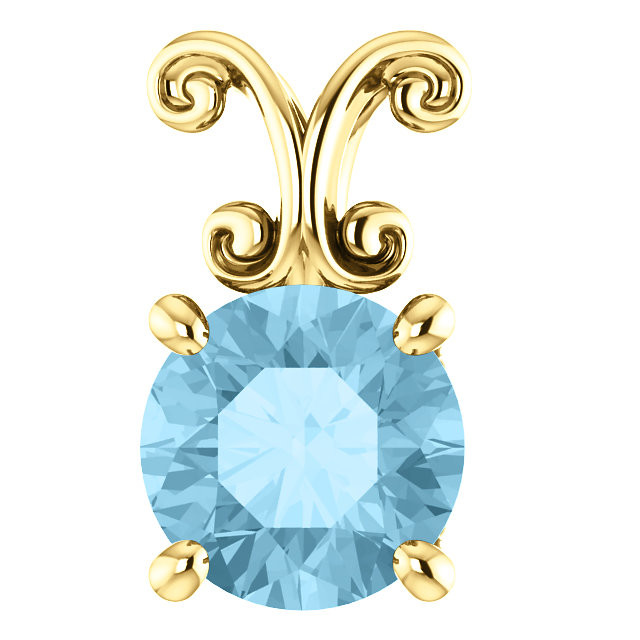 14 Karat Yellow Gold 6mm Round Aquamarine Gem Pendant
