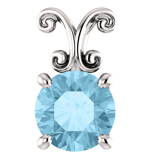 Platinum 6mm Round Aquamarine Gem Pendant