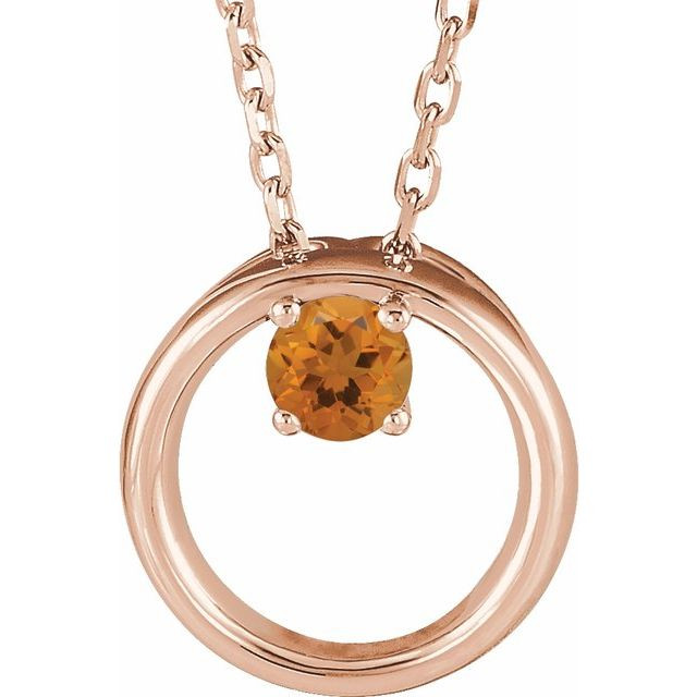 14 Karat Rose Gold Citrine Circle 16 inch Necklace