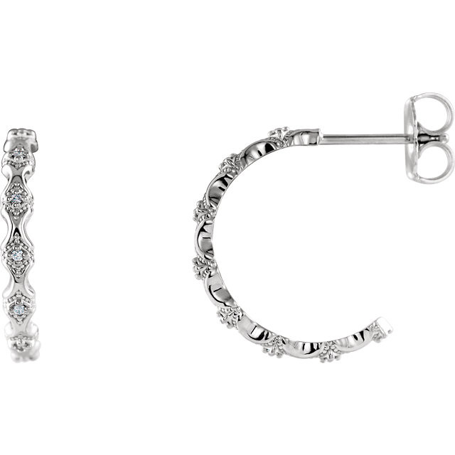 This beautiful Platinum .05 Carat Total Weight Diamond Hoop Earrings is set with selected fine genuine diamond and set with the highest craftsmanship standards in sterling silver