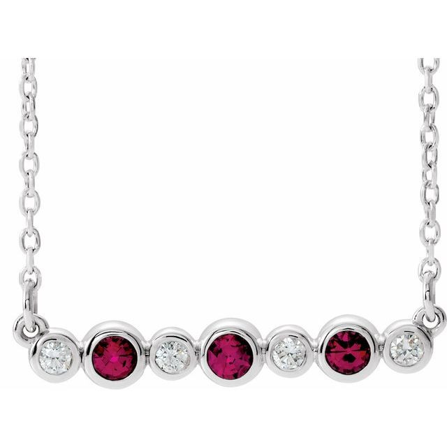 Lab Ruby Gem in PlatinumLab Ruby and .08 Carat Diamond Bezel Set Bar 16 inch Necklace