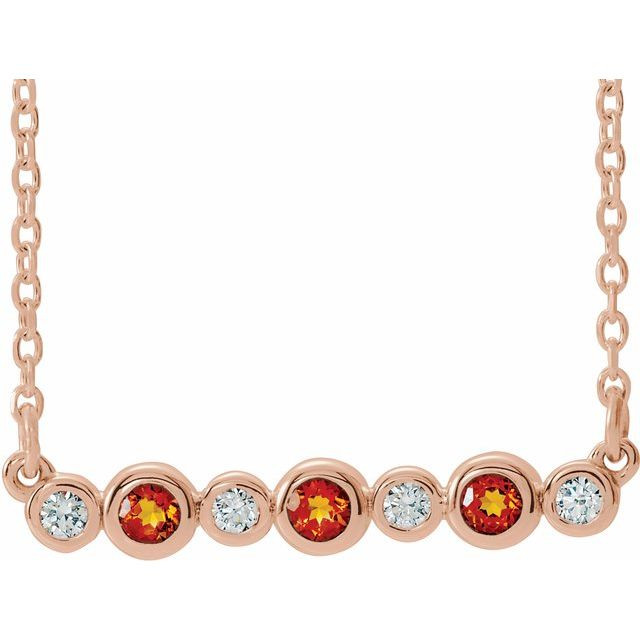This beautiful 14 Karat Rose Gold Citrine & .08 Carat Diamond Bezel-Set Bar 16 inch Necklace - Appealing Round Citrine Necklace is a timeless jewelry item made in the highest standards for Gemstone Fashion jewelry