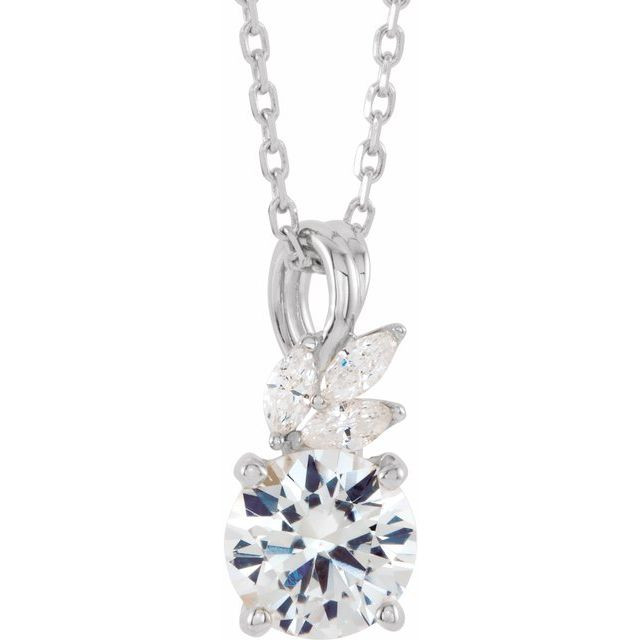 14 Karat White Gold Sapphire & 0.10 Total Carat Weight Diamond 16 inch Necklace
