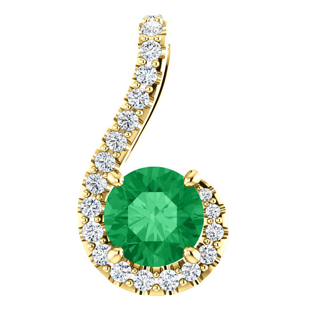 This beautiful 14 Karat Yellow Gold Emerald & 0.17 Carat Total Weight Diamond Pendant is set with selected fine genuine emerald and set with the highest craftsmanship standards in 14kt Yellow gold