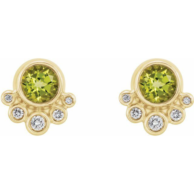14 Karat Yellow Gold Natural Peridot and 0.16 Carat Natural Diamond Earrings Comes Set With