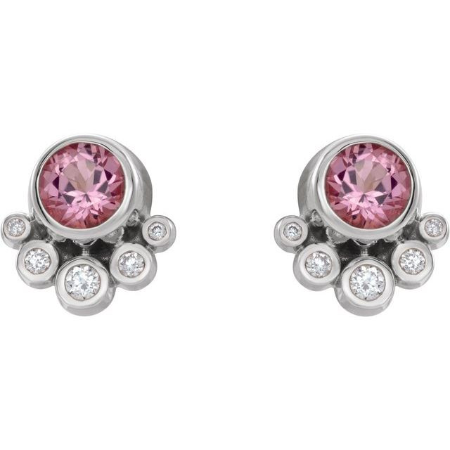 Pink Tourmaline Earrings in Platinum Pink Tourmaline and 0.13 Carat Diamonds