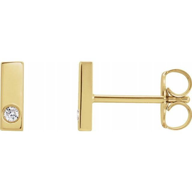 14 Karat Yellow Gold .03 Carat Diamond Bar Earring