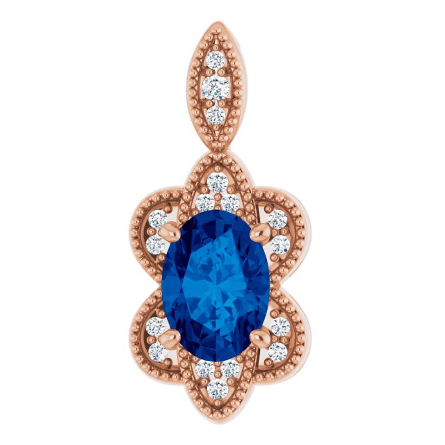 14 Karat Rose Gold Sapphire and .06 Carat Diamond Pendant