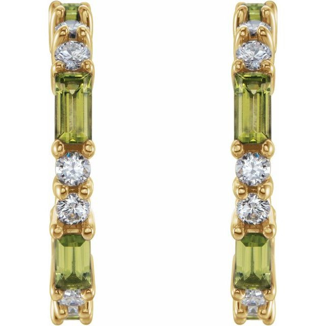 Peridot Hoop Earrings in 14 Karat Yellow Gold and 0.50 Carat Diamonds