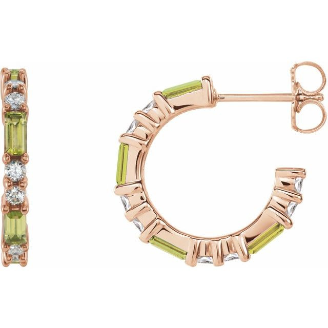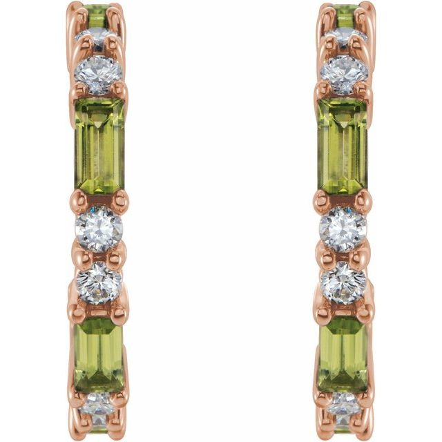 Peridot Hoop Earrings in 14 Karat Rose Gold and 0.50 Carat Diamonds