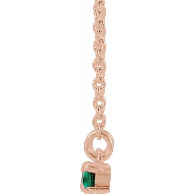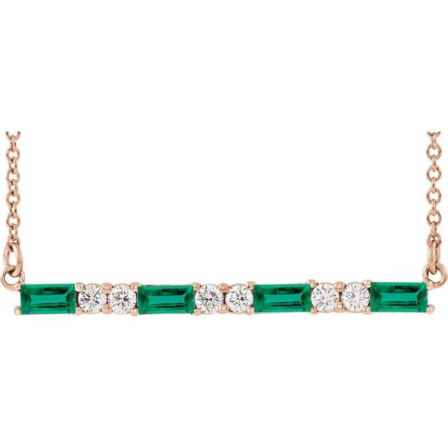 14 Karat Rose Gold Lab Grown Emerald & 0.20 Carat Natural Diamond Bar 16 inch Necklace Comes Set With